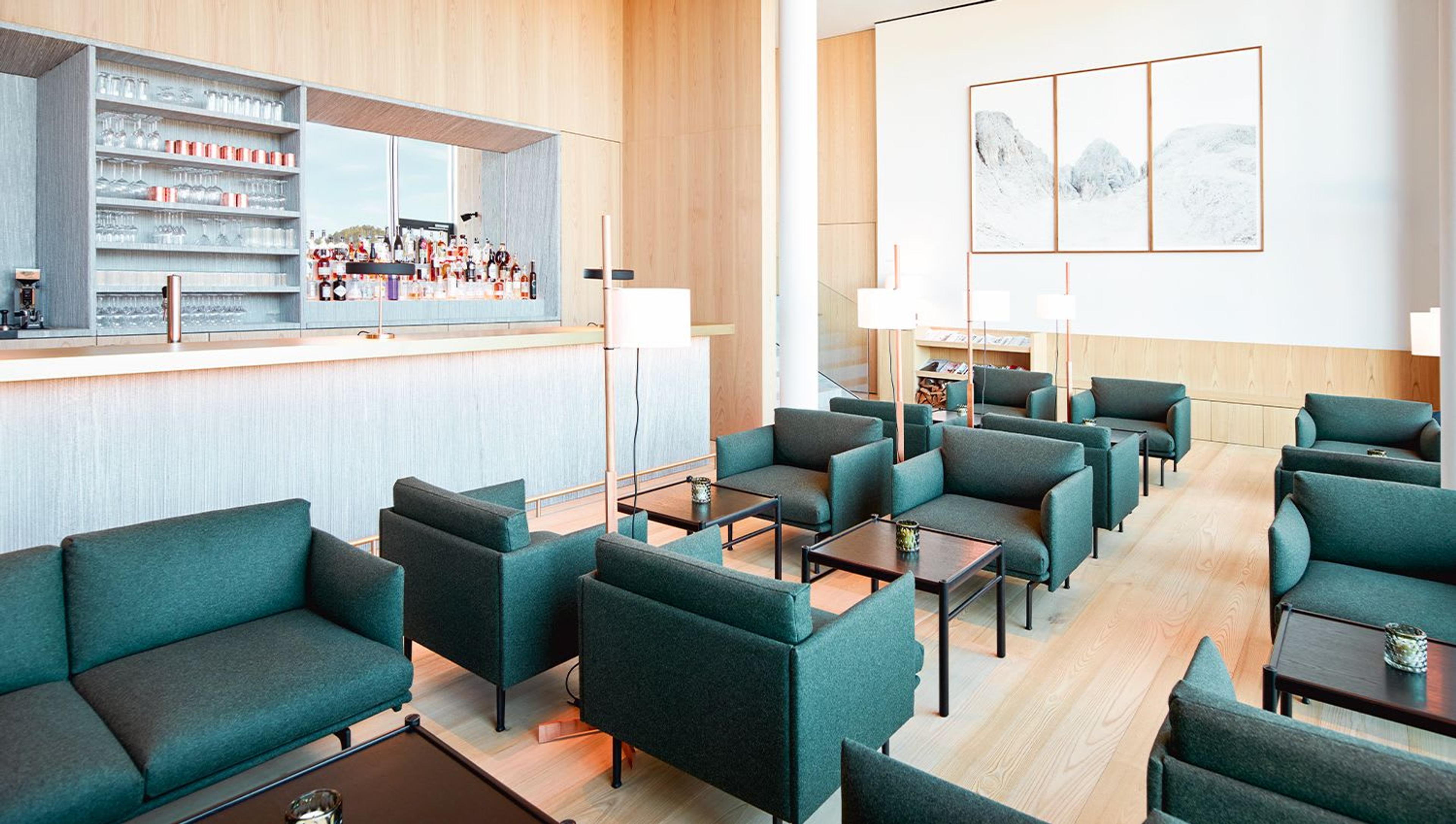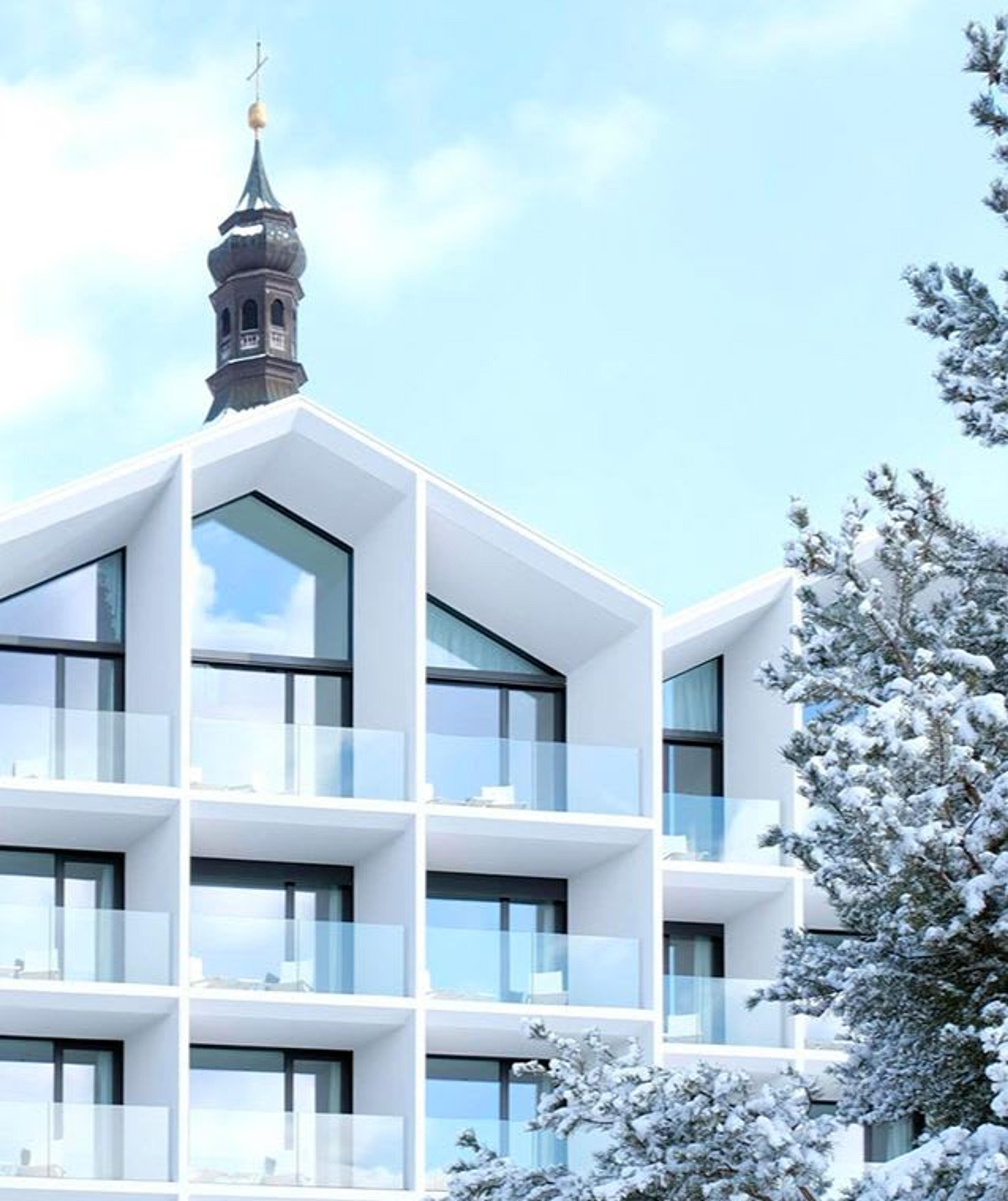 While respecting local context and its surroundings, the strong architectural identity of the hotel follows a contemporary reinterpretation of the Alpine style and plays with vernacular elements such as the typical sloped roof.