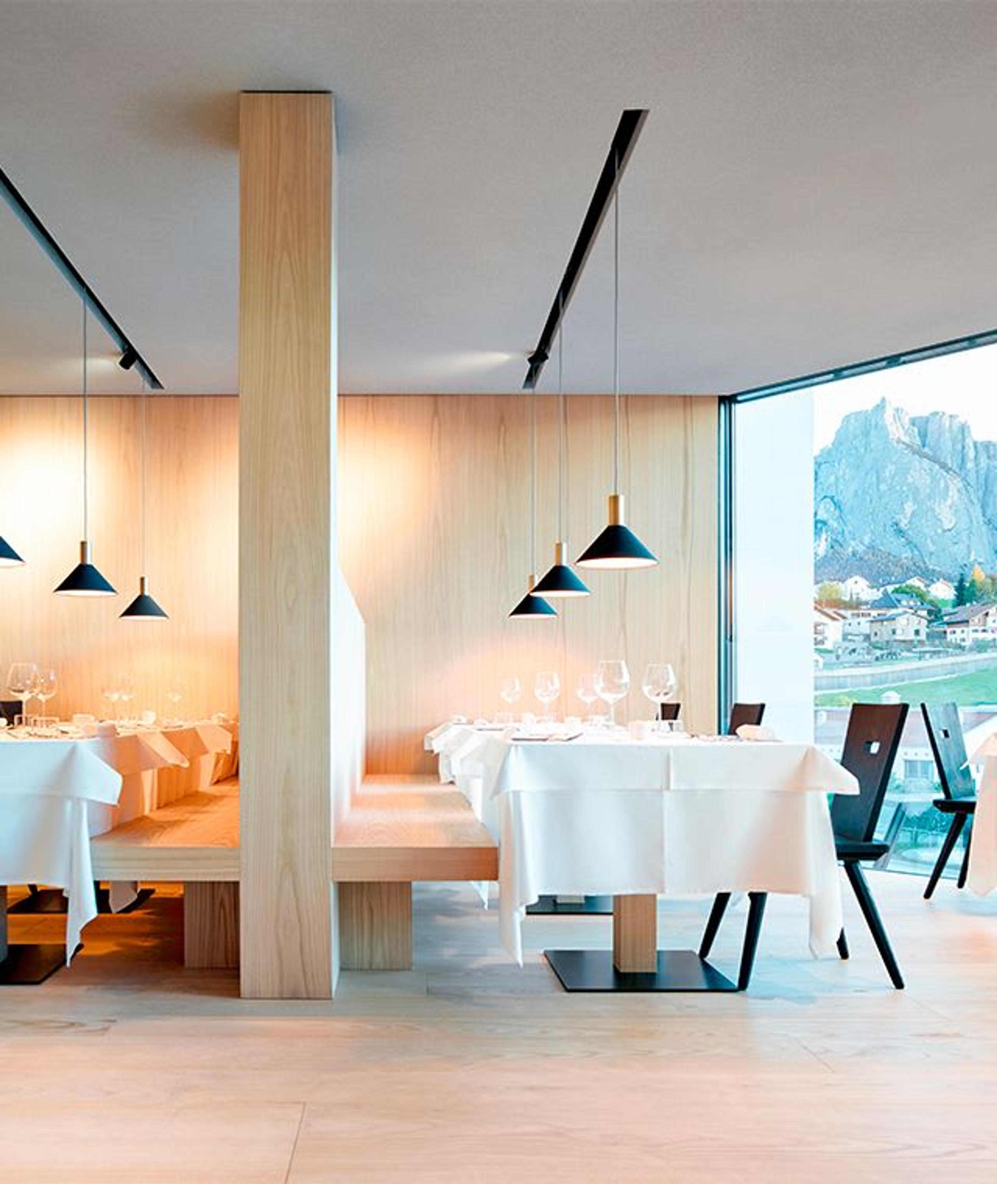 Some remarkable elements complete this immersive experience. Guest can savor the Alpine-Mediterranean cuisine of chef Rosario Viscome, combining classic Italian specialties with regional South-Tyrolian dishes. The hotel restaurant continues to follow the house philosophy with its large windows, intimate soft light and wooden private nooks. Guests can enjoy the intense flavors of the land, with top-quality seasonal ingredients paired with excellent local wines.
