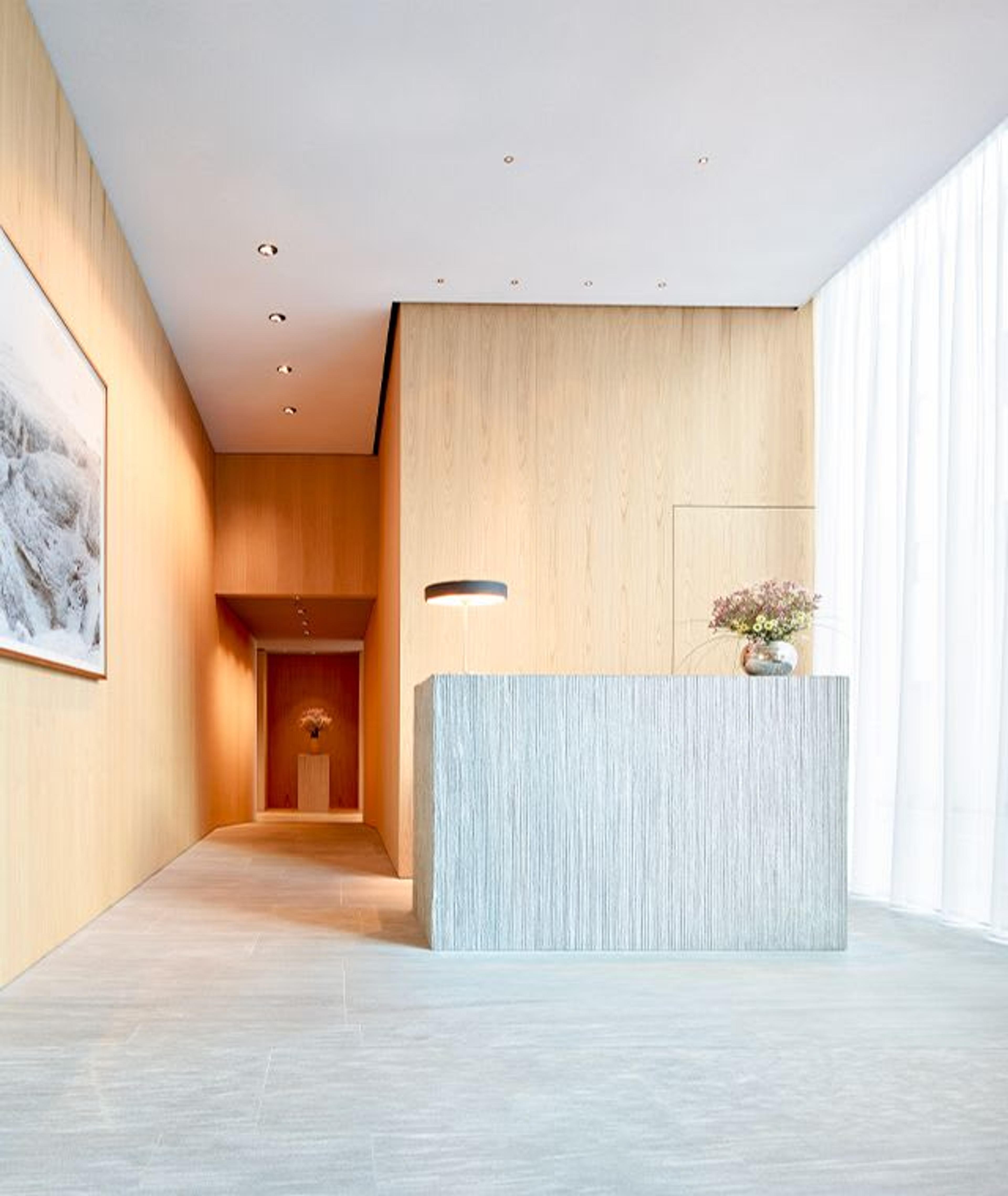 The architect has enriched the purist design with a subtle use of colors. The rooms are characterized by mat, earthy tones, combined with light chestnut wood surfaces. Special attention has been paid to the feel and sensual perception of the materials used in the hotel.