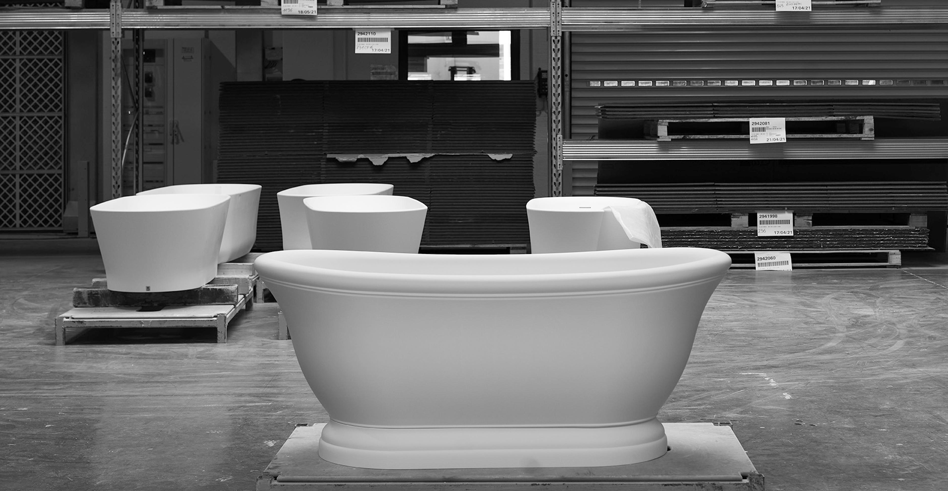What is the step-by-step process of making a bathtub, from its conception to the finished piece? How does this object reflect the work of the craftsmen who contributed to its creation?
