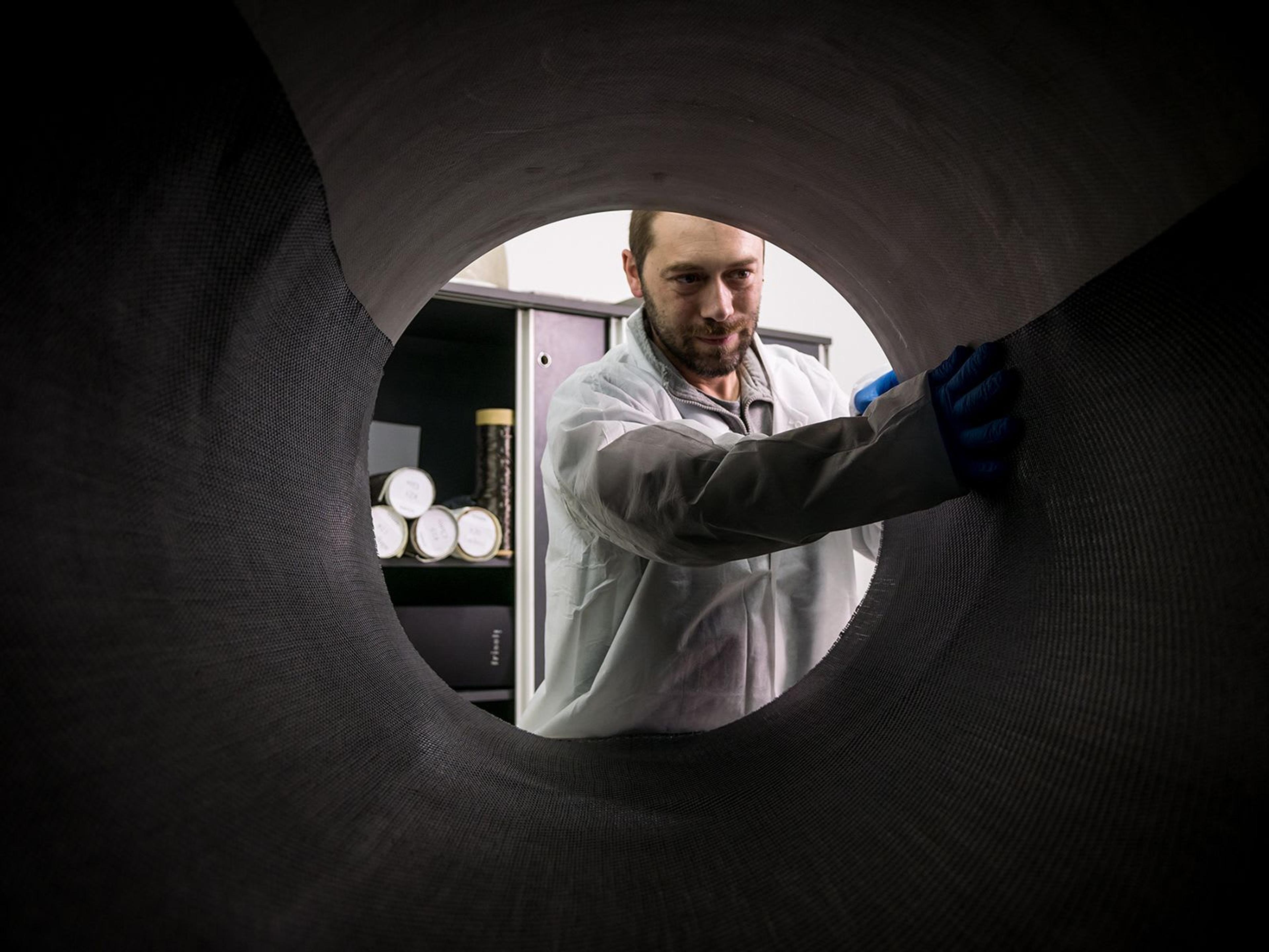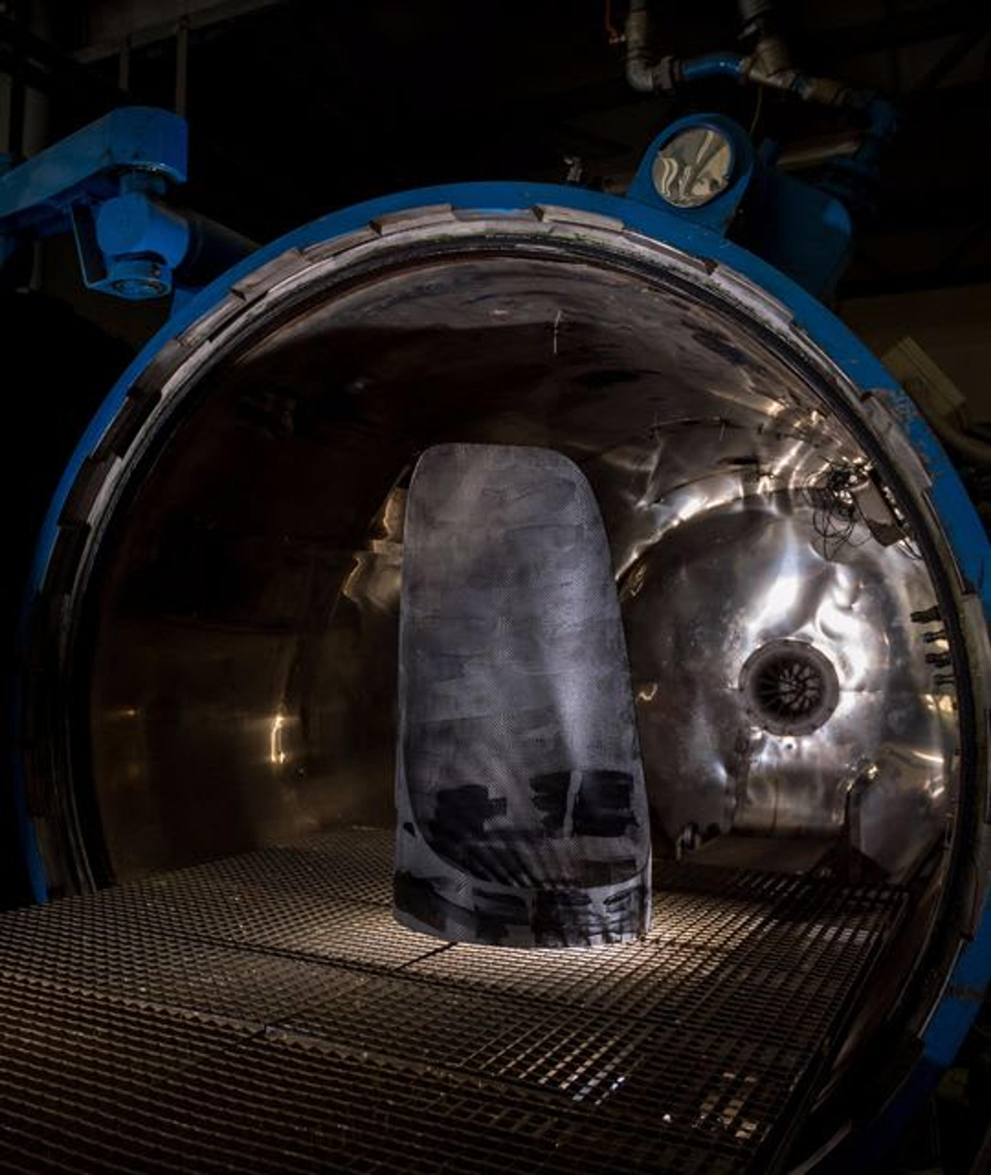 All manufacturing stages have a distinct appeal, but having to choose one, we would pick polymerization, which is the process during which the piece is “cooked” in an autoclave, where it hardens inside its mold. The fascination lies in seeing the fabric-style material come to life as a solid object.