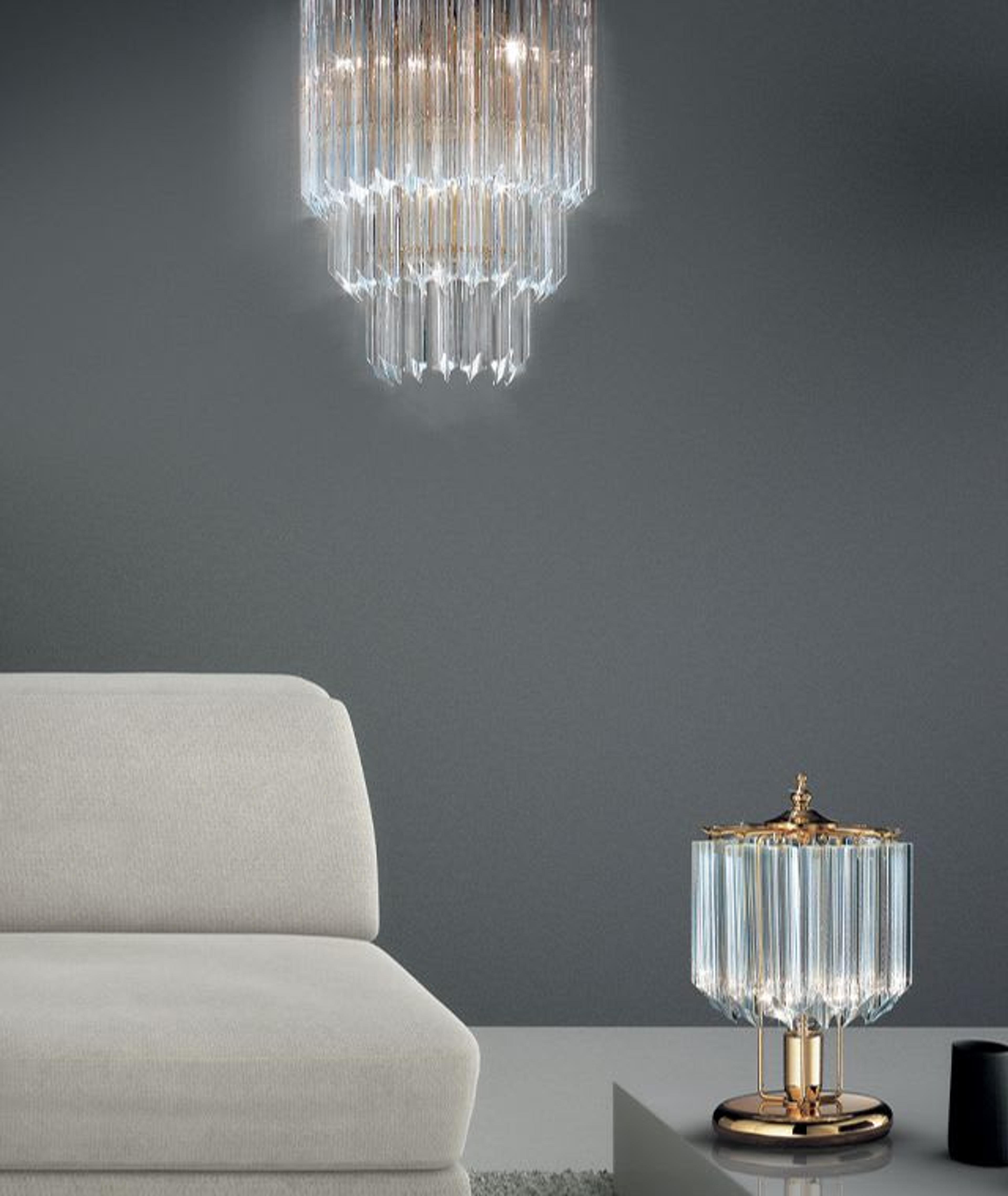 Crystal has been traditionally employed in the Italian artisanal tradition for centuries, and workshops and family business that specialize in the production of this material are still today a staple in the local craftsmanship scenery. An incredibly precious and fascinating element, its most famous use is immediately associated with stunning and majestic chandeliers that adorn royal spaces, creating a sense of luxury and polish. Furthermore, crystal details have been added to classic furnishing pieces and décor accessories to add a touch of refinement and glamour even without the astonishing presence of a central light, the effect can be recreated using crystal in the making of elegant floor lamps, furniture and table lamps.