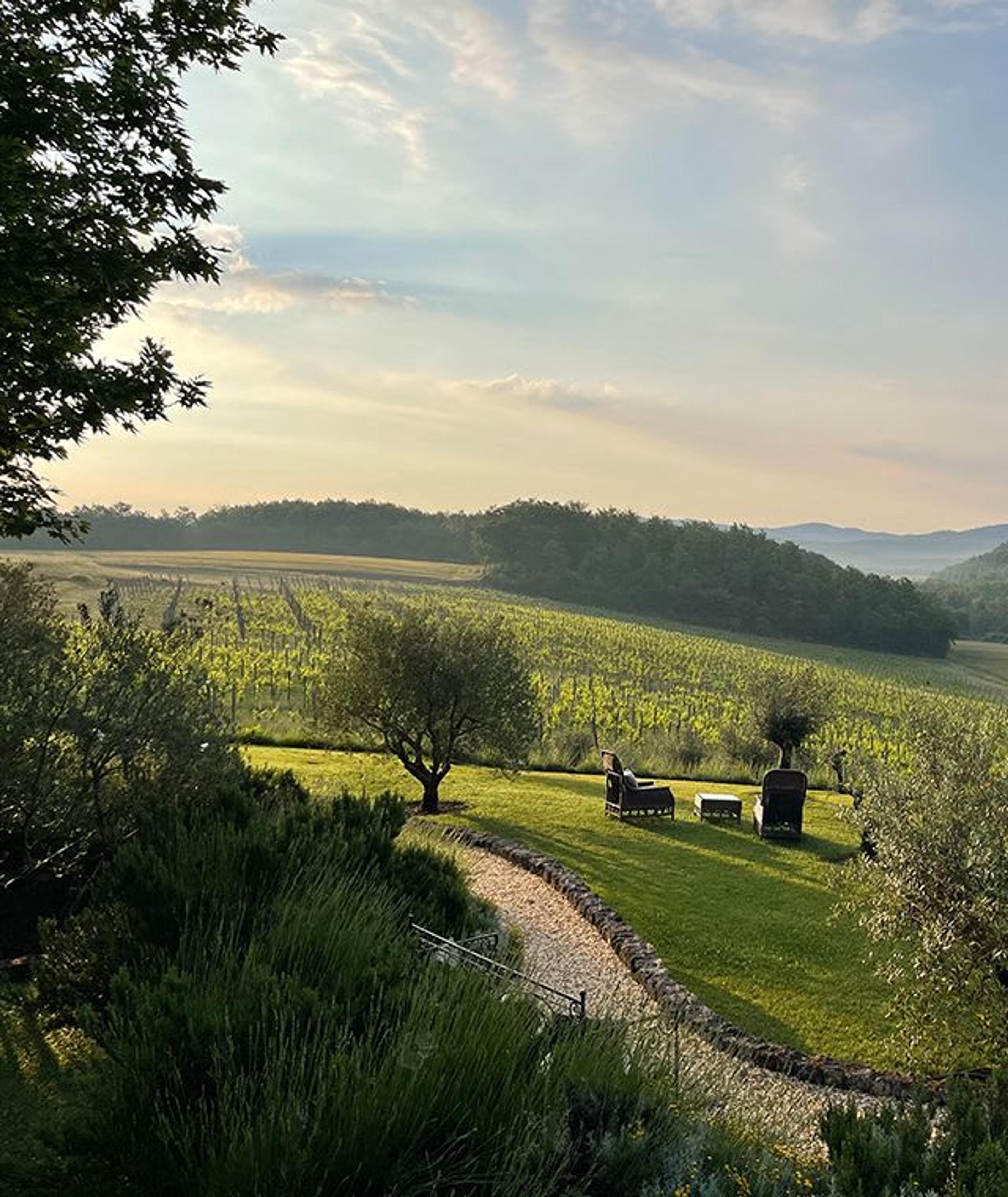 Immersed in thirteen spacious acres of garden utopia, the villa exudes a sense of rustic grandeur and well-grounded energy. The freshwater river Merse, which runs through the outskirts of the meticulously manicured property's landscape, ultimately contributes to creating the illusion of stepping into an idyllic locus amoenus.
